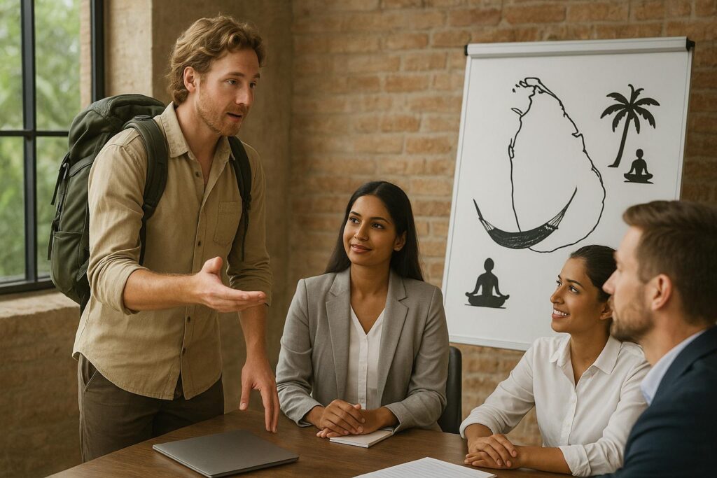 To create transformative travel experiences that connect Sri Lankan expatriates and global friends with impactful community projects, fostering sustainable development, and spiritual enrichment across Sri Lanka.